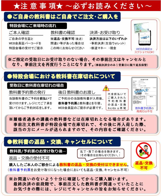 ★教科書割引のためには組合員登録済みの学生証が必要です★円滑に&衛生的に!事前決済(生協ウォレット)、または修道マネーでのご購入がおすすめです。